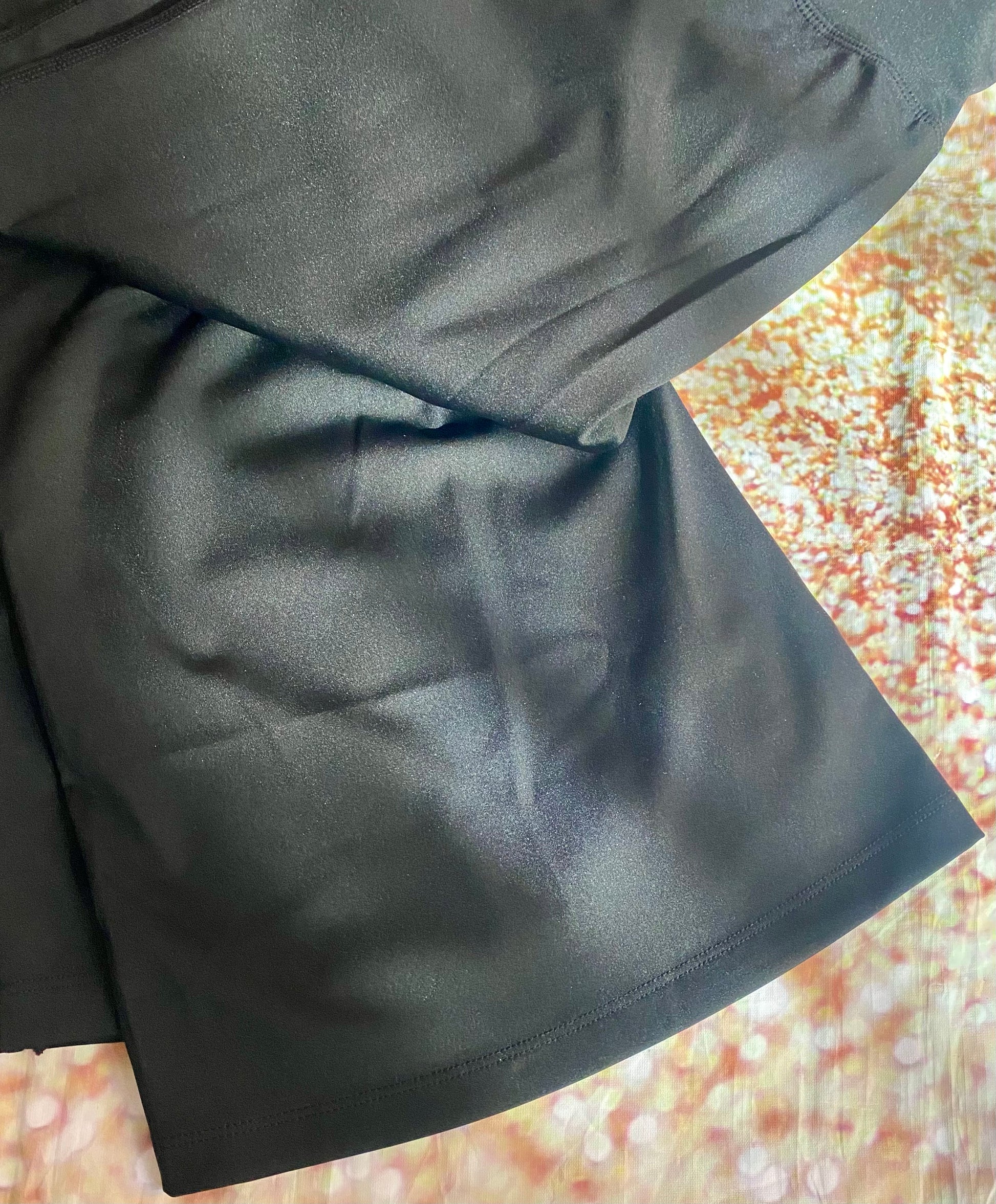 true to size. Nylon/Spandex material.